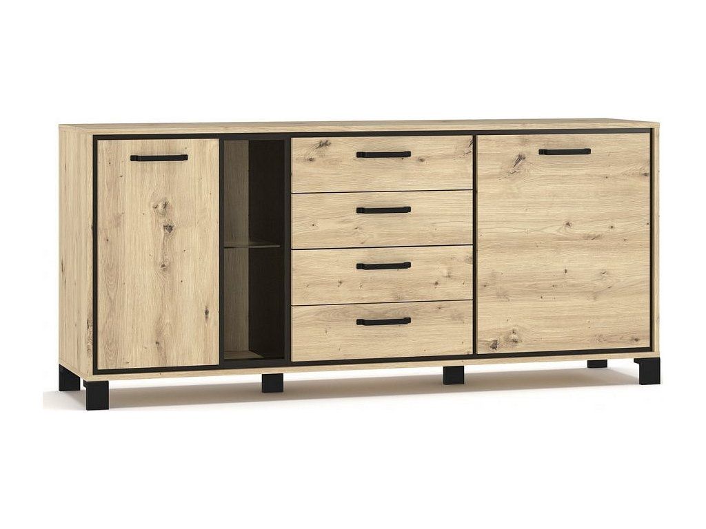 CASA 97033 Komoda dvoudveřová se čtyřmi zásuvkami v moderním provedení dekoru přírodního dřeva. Nábytek je vyroben z kvalitní LTD desky v barevné kombinaci dub artisan/wenge tmavá. Dodáváme v demontovaném stavu.