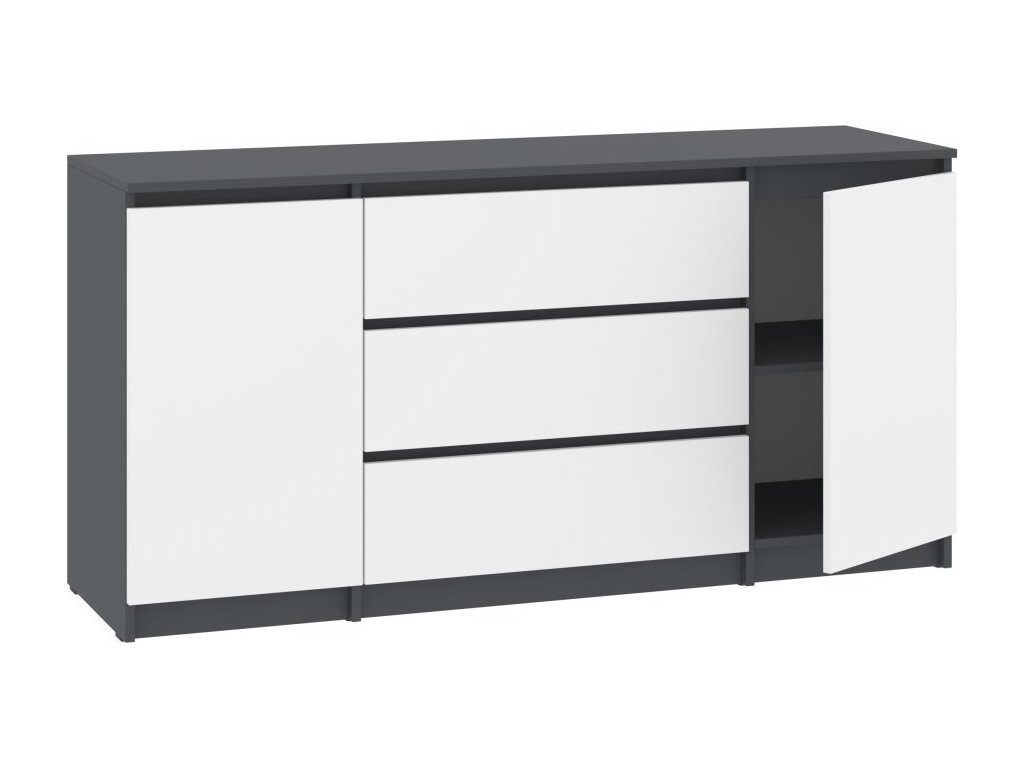 Díky pečlivému zpracování a kvalitním materiálům je komoda odolná a dlouhodobě spolehlivá. Dvířka po stranách umožňují pohodlný přístup k uloženým věcem, zatímco zásuvky zajišťují rychlý a jednoduchý přehled o drobnostech. Tato komoda je praktická, funkční a krásná zároveň.