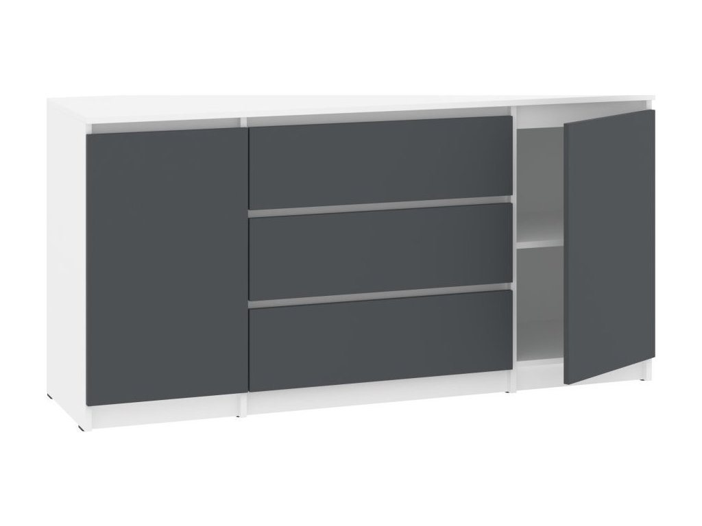 - Moderní a praktický design: Kombinace zásuvek a dvířek po stranách poskytuje dostatek úložného prostoru a zároveň působí stylově.