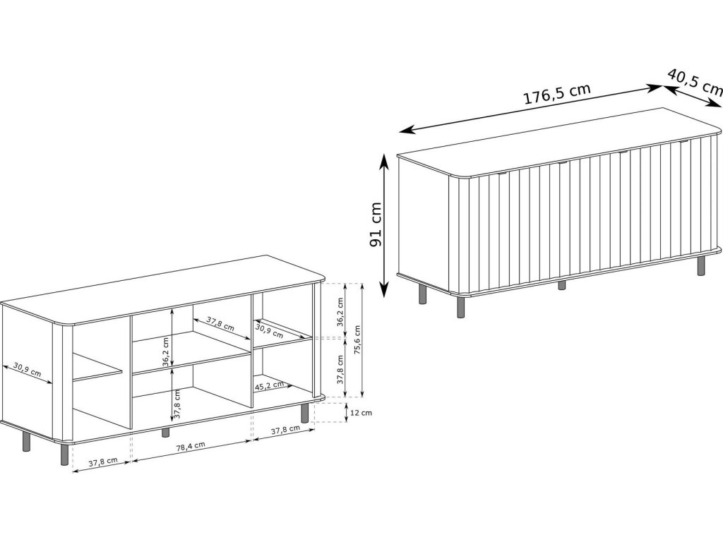 Díky čtařma skříňkám s vnitřními policemi budete mít ve věcech konečně pořádek. Kvalitní výsuvy (soft close) a panty s tichým dovíráním se postarají o každodenní komfort. Rozměry viz obrázek.