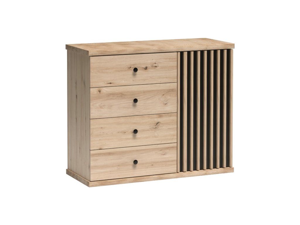 Komoda BARBUS 1D4S na nohách, dub artisan/černá