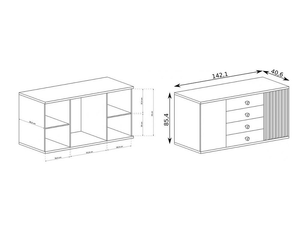 Moderní dvoudveřová komoda se 4 zásuvkami ze sektorové kolekce BARBUS. Celá řada v sobě spojuje jednoduchost, originální vzhled a funkčnost s netradičním provedením detailu dvířek a lamelami. Nábytek je vyroben z kvalitního lamina v dekoru dub artisan v kombinaci s černou. Hrany jsou ohraničeny ABS páskou, dekorační lamely jsou vyrobeny z desky MDF. Zásuvky jsou vybaveny kovovými pojezdy se systémem tichého dovírání. Komodu je možné doplnit dalšími produkty z řady BARBUS ve stejném designu. Dodáváme v demontovaném stavu. CASA 71023