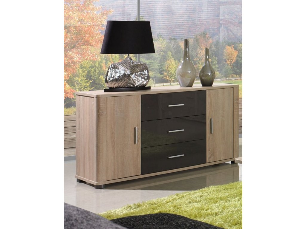 Moderní komoda FILEMON R4 je vyrobena z kvalitního lamina v dekoru dub sonoma v kombinaci s grafitem. Lamino je odolné vůči poškrábání, vlhkosti a vysokým teplotám. Čílka zásuvek jsou vyrobena z MDF s lesklou povrchovou úpravou. Komoda se skvěle hodí k obývací stěně FILEMON ve stejném designu. Díky svému provedení poskytuje dostatek úložného prostoru. Komodu je možné doplnit dalšími komponenty z řady FILEMON ve stejném dekoru. Dodáváme v demontu a součástí je montážní plánek včetně všech potřebných spojovacích materiálů. Vyobrazené dekorace nejsou v ceně.