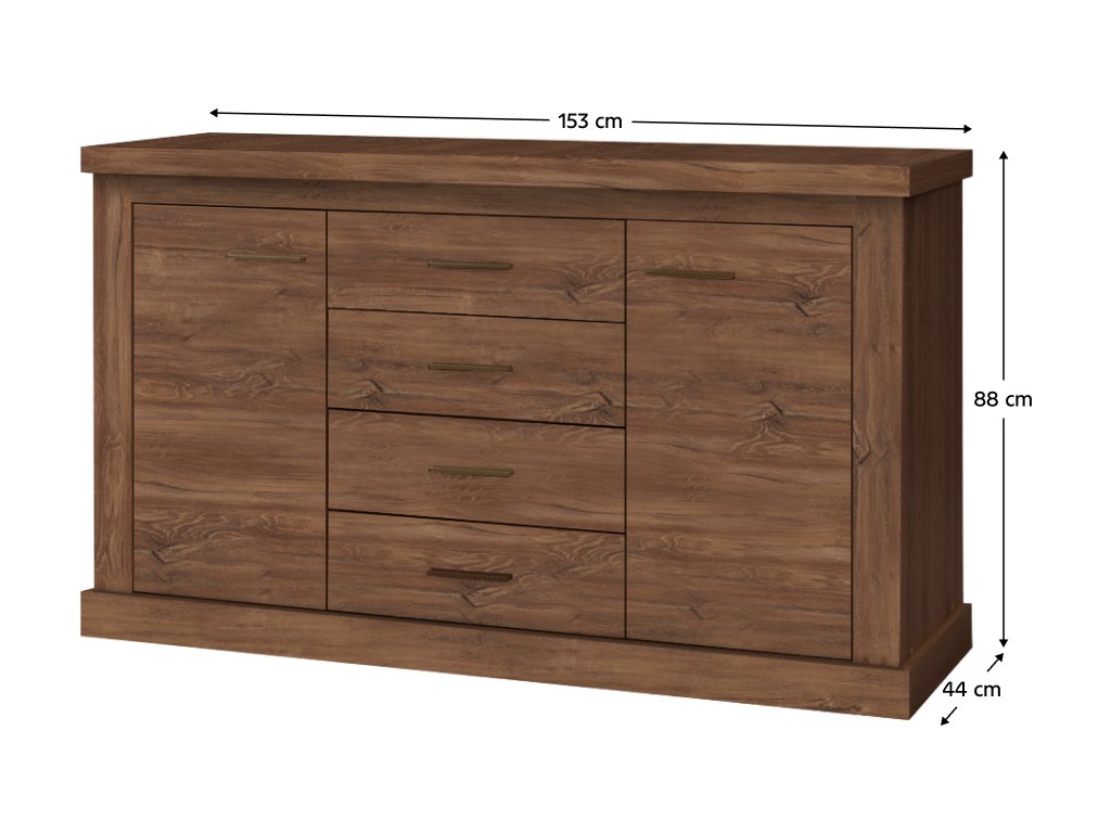 Komoda AR5 z elegantní kolekce HILARD Vám dopřeje luxus a nádech historie. Jedinečný design je sklouben s vysokou funkčností. Celá kolekce je vyrobena z kvalitního lamina v dekoru dub stirling. Komoda AR5 disponuje 4 zásuvkami a 2 skříňkami. Nabízí tak dostatek úložného prostoru. Ke komodě doporučujeme přikoupit další komponenty ze sestavy HILARD. Dodáváme v demontu.