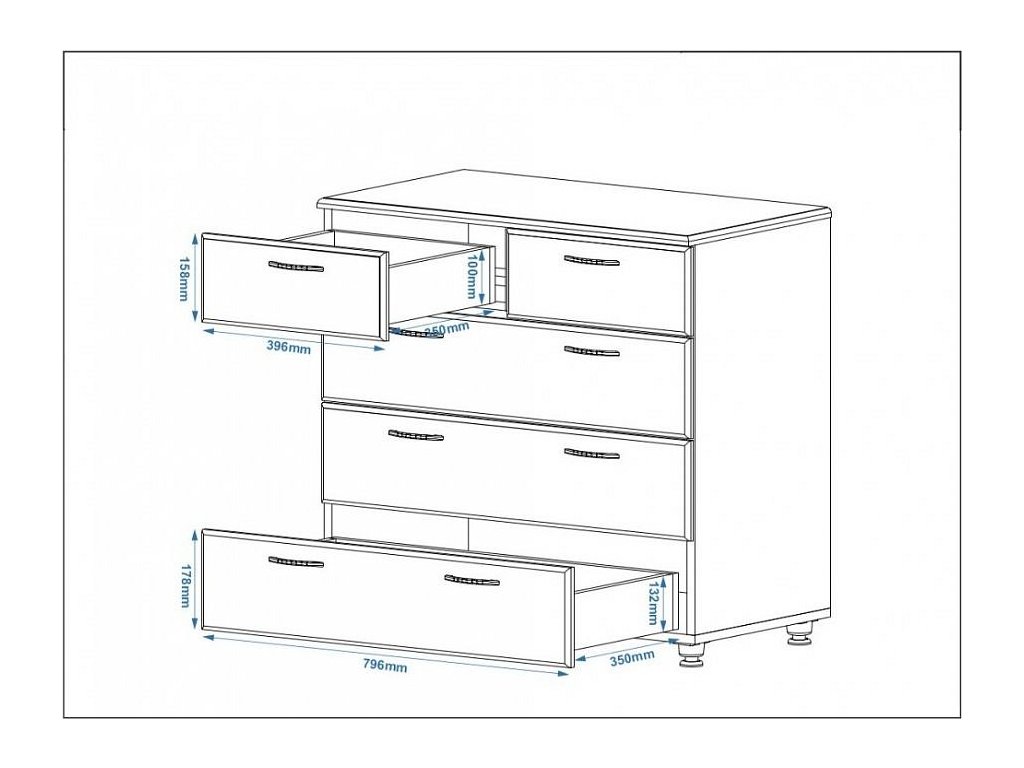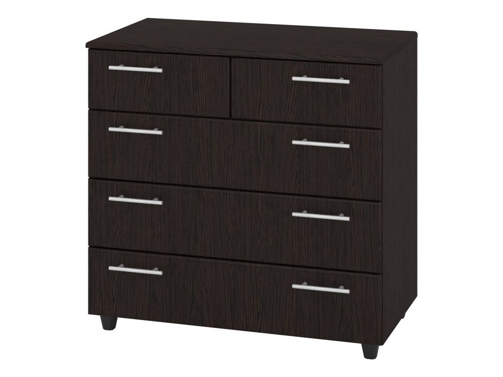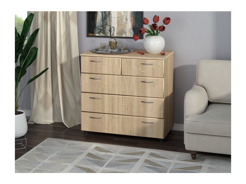 Komoda K-3+2 MDF je elegantní a praktický kus nábytku, který se hodí do každého interiéru. Vyrobena je z kvalitního lamina o tloušťce 16 mm, což zajišťuje její odolnost a dlouhou životnost. Celkové rozměry komody jsou: