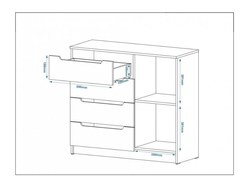 - Prostorný úložný prostor: Čtyři zásuvky a otevřený prostor pro snadný přístup k uloženým věcem.