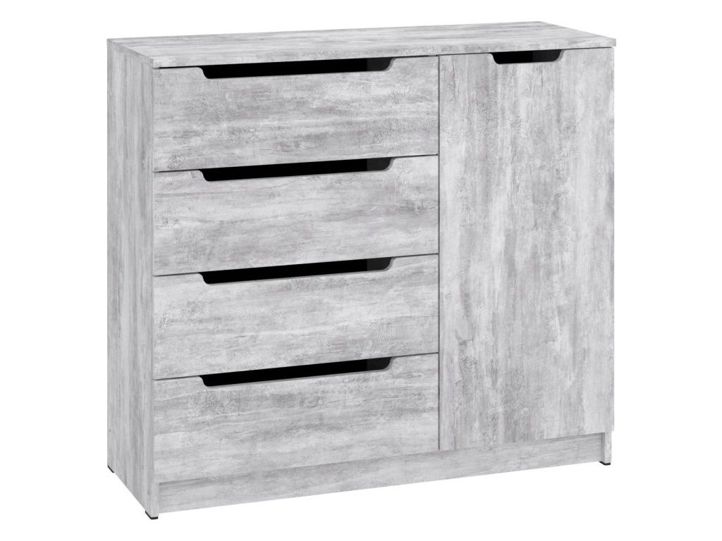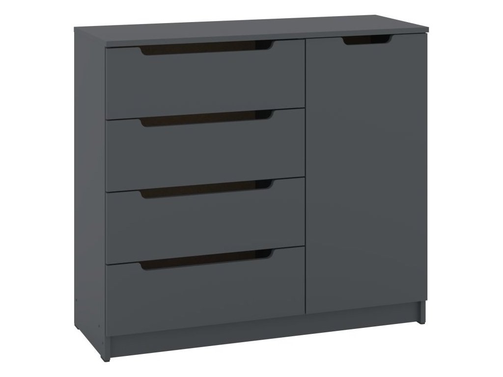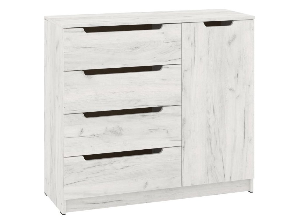 Komoda K-4+1 EKO je moderní a praktický nábytek, který se skvěle hodí do každého interiéru. Nabízí dostatek úložného prostoru díky čtyřem prostorným zásuvkám a skříňky, ideálnímu pro uložení různého typu předmětů. Vyrábí se v několika atraktivních dekorech, včetně bílé, dubu Sonoma, ořechu a dalších variant, což zajišťuje širokou možnost přizpůsobení každému stylu interiéru.