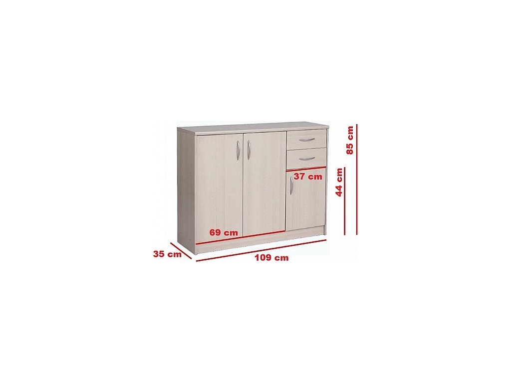 Komoda K1–3D-2S ® je funkční nábytkový kousek, který poskytuje praktické úložné možnosti. S kombinací tří zásuvek a dvou polic nabízí dostatek prostoru pro uložení oblečení, dokumentů, nebo drobností v domácnosti. Komoda je vyrobena z kvalitního lamina, které je odolné a snadno udržovatelné, a to v matné povrchové úpravě. Horní plocha komody může sloužit jako odkládací prostor pro různé předměty, což ji činí univerzální. Díky kompaktním rozměrům (šířka 109 cm, hloubka 35 cm a výška 85 cm) je ideální pro menší i středně velké místnosti. Komoda je dodávána v demontu, což zajišťuje pohodlnou přepravu a snadnou montáž.