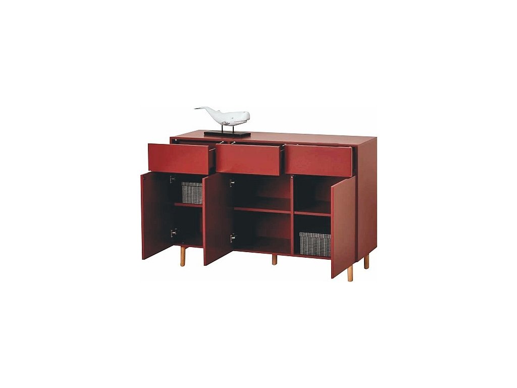 Komoda K2 3Dv3z nabízí dostatek úložného prostoru díky třem dveřím a třem zásuvkám. S rozměry 119 × 95 × 41 cm je ideální pro uložení oblečení, ložního prádla, knih a dalších věcí. Je vyrobena z odolného MDF materiálu v tmavě červené matné barvě. Komoda je snadno udržovatelná díky matnému povrchu, který je odolný proti otiskům prstů a škrábancům. Tento kus nábytku patří do nábytkové řady K2, takže je možné ji kombinovat s ostatními produkty ze stejné série. Dodává se v demontu pro snadnou přepravu a montáž.