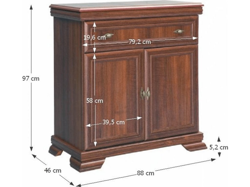 Komoda dvoudveřová KK1 se zásuvkou z elegantní kolekce KORA v klasickém rustikálním stylu. Jedinečný design je sklouben s vysokou funkčností. Celá kolekce je vyrobena z kvalitního lamina v dekoru samoa king. Ke komodě doporučujeme přikoupit další komponenty ze sestavy KORA ve stejném designu. Dodáváme v demontu.