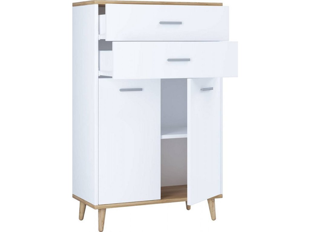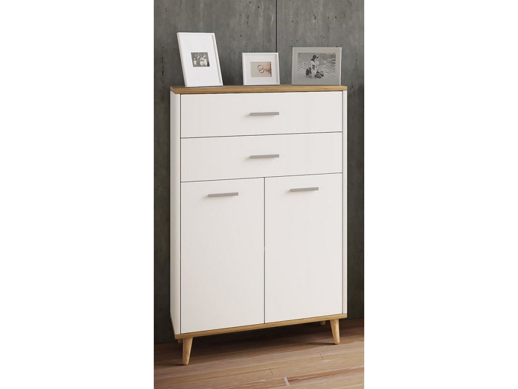 Moderní zásuvková komoda Landos od značky VCM zaujme svým nadčasovým designem a skvěle doplní jakýkoli nábytek do obýváku. Tato elegantní bílá komoda nabízí praktické řešení úložného prostoru: dvě prostorné zásuvky a dvě velká úložná místa ukrytá za výklopnými dvířky. Vnitřní police umožňují přehledné uspořádání všech potřebných věcí, takže komoda je ideální i jako funkční komoda do obýváku, pracovny či ložnice.