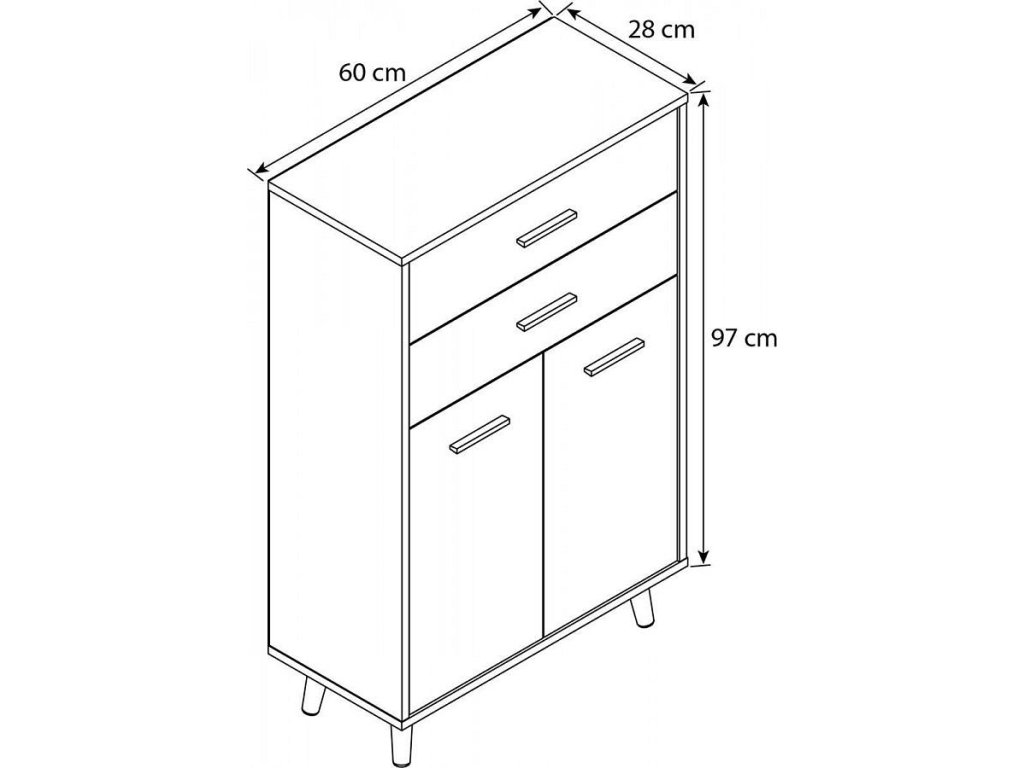 - Rozměry bez nožiček: cca výška 87 × šířka 60 × hloubka 28 cm