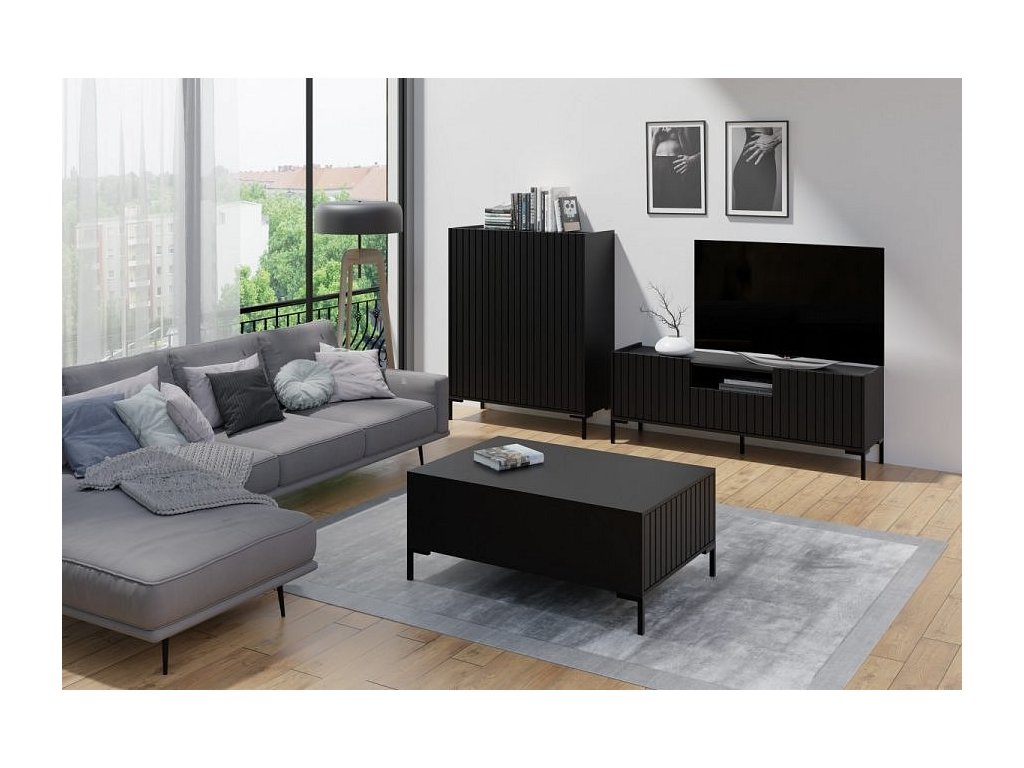 Stylový černý nábytek, krásný a funkční - to je obývací sestava Lanny. Tento nábytek do obývacího pokoje je dokonalým příkladem vytříbeného klasického designu, který se bude hodit do každé místnosti bez ohledu na její uspořádání a velikost. Sestava se skládá z velkokapacitních komod, Tv stolků a konferenčního stolku.