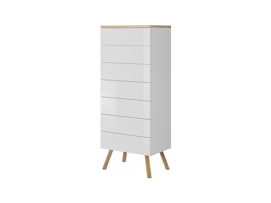 Komoda LIMA 50 je vysoký a praktický kus nábytku, ideální pro organizaci různých věcí. S rozměry 52 × 133,5 × 35,5 cm nabízí dostatek úložného prostoru v podobě 7 prostorných zásuvek, které usnadní udržení pořádku ve vašem interiéru. Komoda je vyrobena z kvalitního lamina o tloušťce 16 mm, což jí zajišťuje dlouhou životnost a odolnost proti poškození. V kombinaci lesklých a matných povrchů má moderní vzhled, který skvěle zapadne do různých typů interiérů. Výška noh je 25 cm, což usnadňuje úklid pod komodou. Dodává se v demontu pro pohodlnější přepravu a montáž.