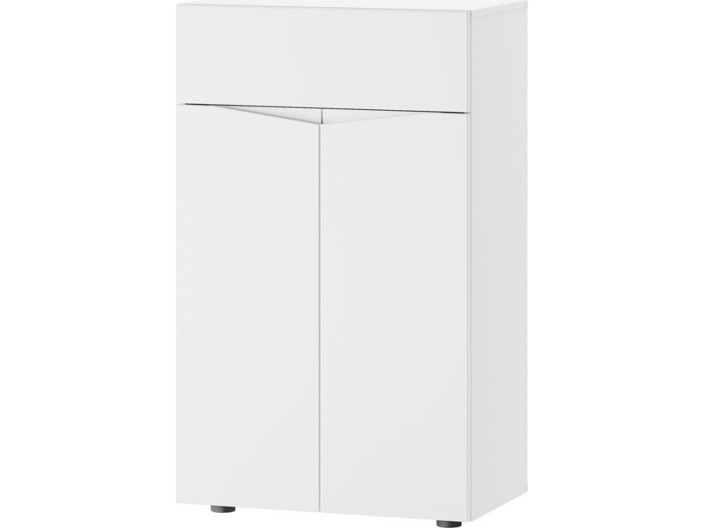 CASA 75047 Komoda dvoudveřová se zásuvkou. Komoda je vyrobena z kvalitní LTD desky v barvě bílá mat, dvířka jsou vyrobeny z desky MDF v barvě bílá mat. Nábytek je bezúchytový, úchyty nahrazuje vyfrézování v předních dvířkách. Dodáváme v demontovaném stavu.