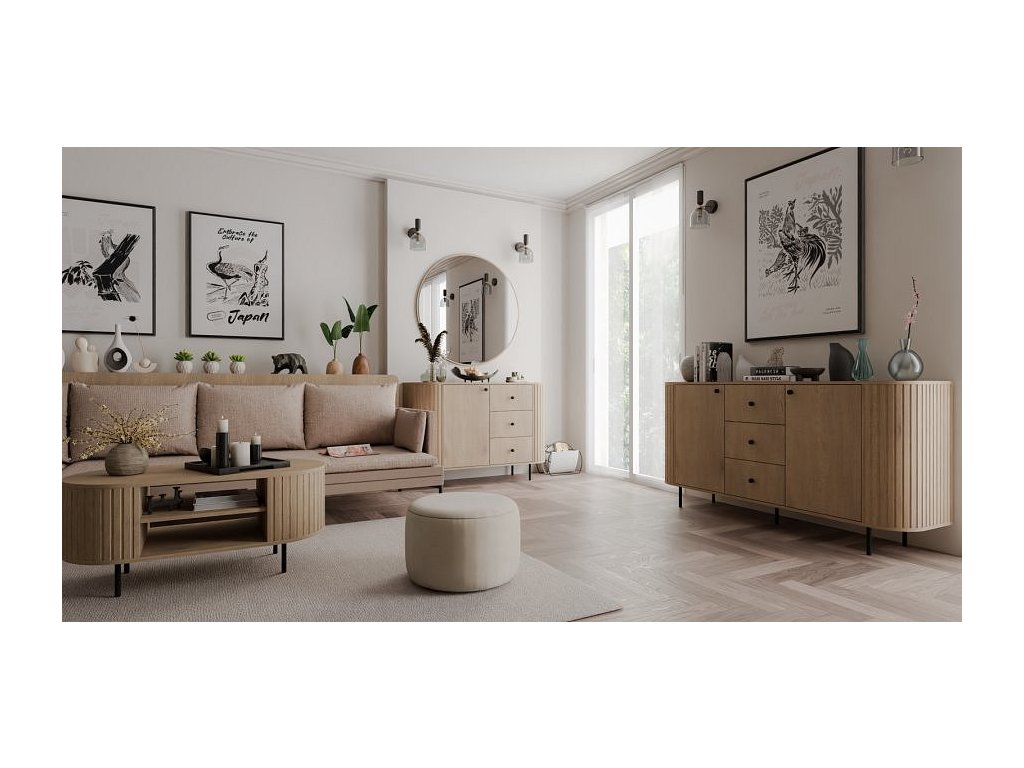 Objevte kolekci nábytku Orvelo, která představuje minimalismus ozvláštněný precizními frézovanými detaily a vnáší do interiéru zcela nový rozměr elegance. Barevné provedení v jemných zemitých odstínech tvoří harmonický základ, černé a zlaté akcenty dodají lehkost a moderní charakter. Kolekce byla navržena tak, aby každý prvek – od vitrín a komod až po konferenční stolky a TV skříňky – mohl být použit samostatně a zároveň ladil jako celek.