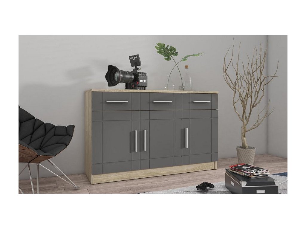 Komoda Parker 3D3S dub sonoma/grafit