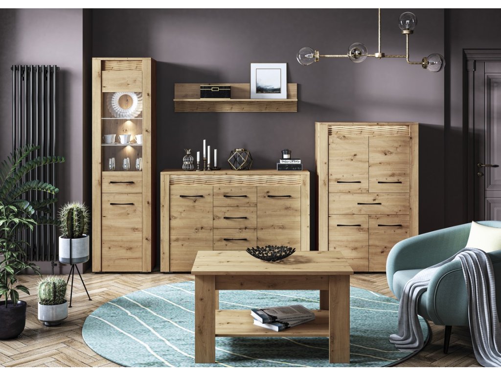 Luxusní komoda 2-dveřová se 4 zásuvky PATENS 2D4S je skvělým spojením novodobého designu. Celá řada je navržena z exkluzivní kolekce, vyrobena z kvalitního lamina v dekoru dub artisan. Komodu je možné doplnit o další produkty z řady PATENS ve stejném designu. Komoda obsahuje osvětlení dekoračního frézování. Dvířka jsou vybaveny systémem tichého dovírání. Úchytky jsou kovové černé. Dodáváno v demontovaném stavu CASA 56004