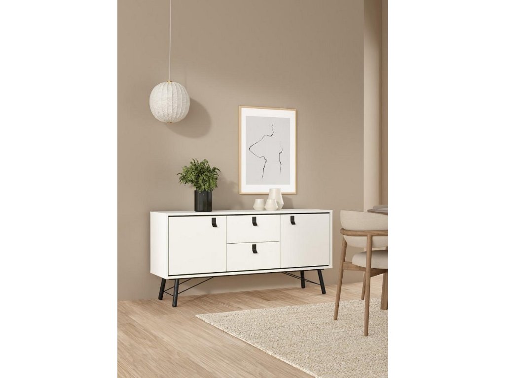 Retro komoda RAIN 2D2S dvoudveřová se 2 zásuvkami v bílém provedení. Nábytek je vyroben z kvalitního lamina, které je odolné a snadné na údržbu. Retro vzhled zdůrazňují vysoké nožky. Díky svému uspořádání poskytuje dostatek úložného prostoru. Komodu je možné doplnit o další komponenty z řady RAIN ve stejném designu. Dodáváno v demontu.