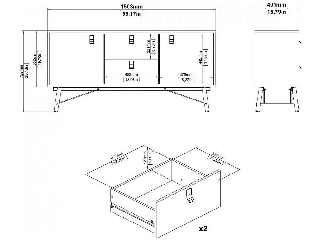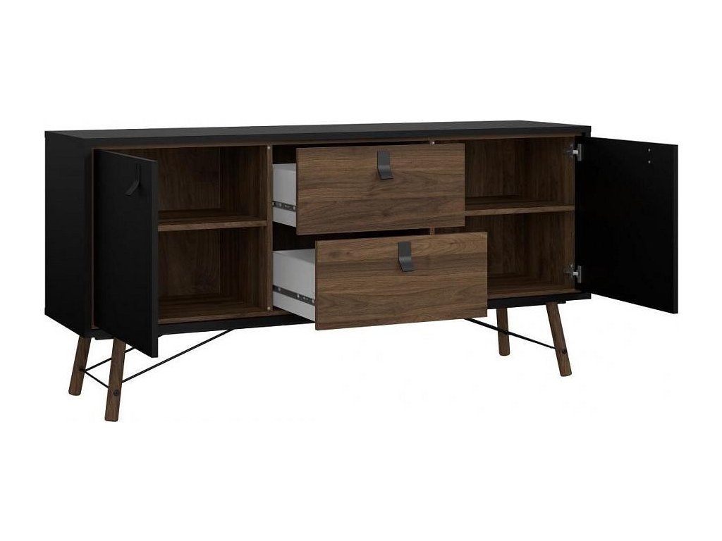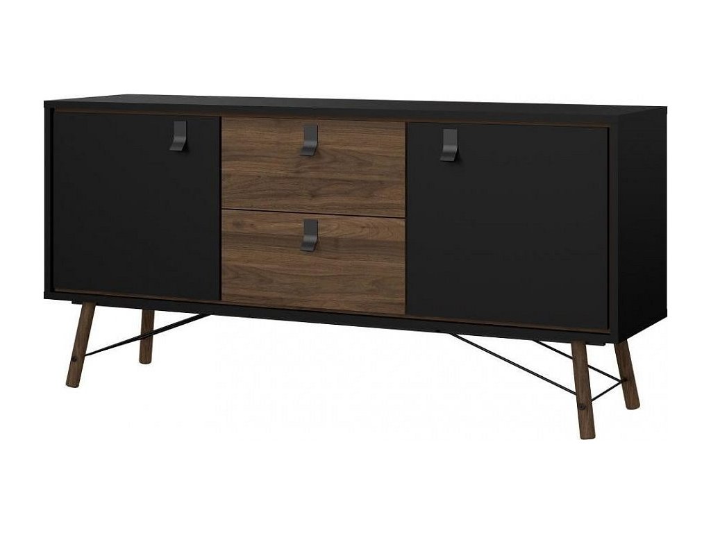 Retro komoda RAIN 2D2S dvoudveřová se 2 zásuvkami v dekoru ořech v kombinaci s černou. Nábytek je vyroben z kvalitního lamina, které je odolné a snadné na údržbu. Retro vzhled zdůrazňují vysoké nožky. Díky svému uspořádání poskytuje dostatek úložného prostoru. Komodu je možné doplnit o další komponenty z řady RAIN ve stejném designu. Dodáváno v demontu.