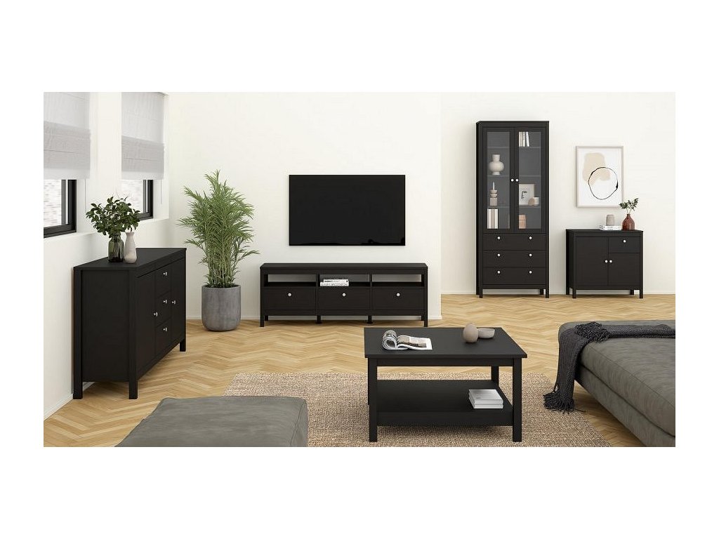 Komoda REAL 2D1S skvěle zapadne do moderního i stylového interiéru. Nábytek je vyroben z kvalitního lamina v černém provedení, které je odolné a snadné na údržbu. Stačí změnit drobný detail, kterým jsou v tomto případě úchytky a z jemného stylu provence, rázem budete mít moderní kus, který skvěle zapadne např. do industriálního stylu. Oba typy úchytek, které jsou vyobrazené na fotografii, jsou součástí balení. Díky svému uspořádání poskytuje dostatek úložného prostoru. Komodu je možné doplnit o další komponenty z řady REAL ve stejném designu. Dodáváno v demontu.