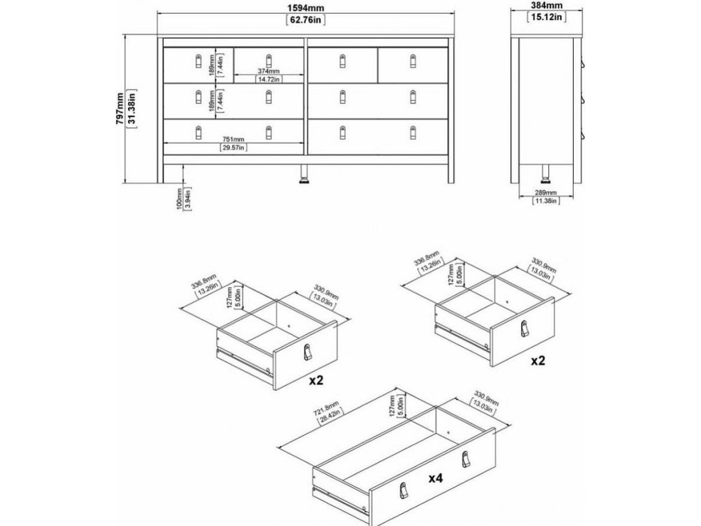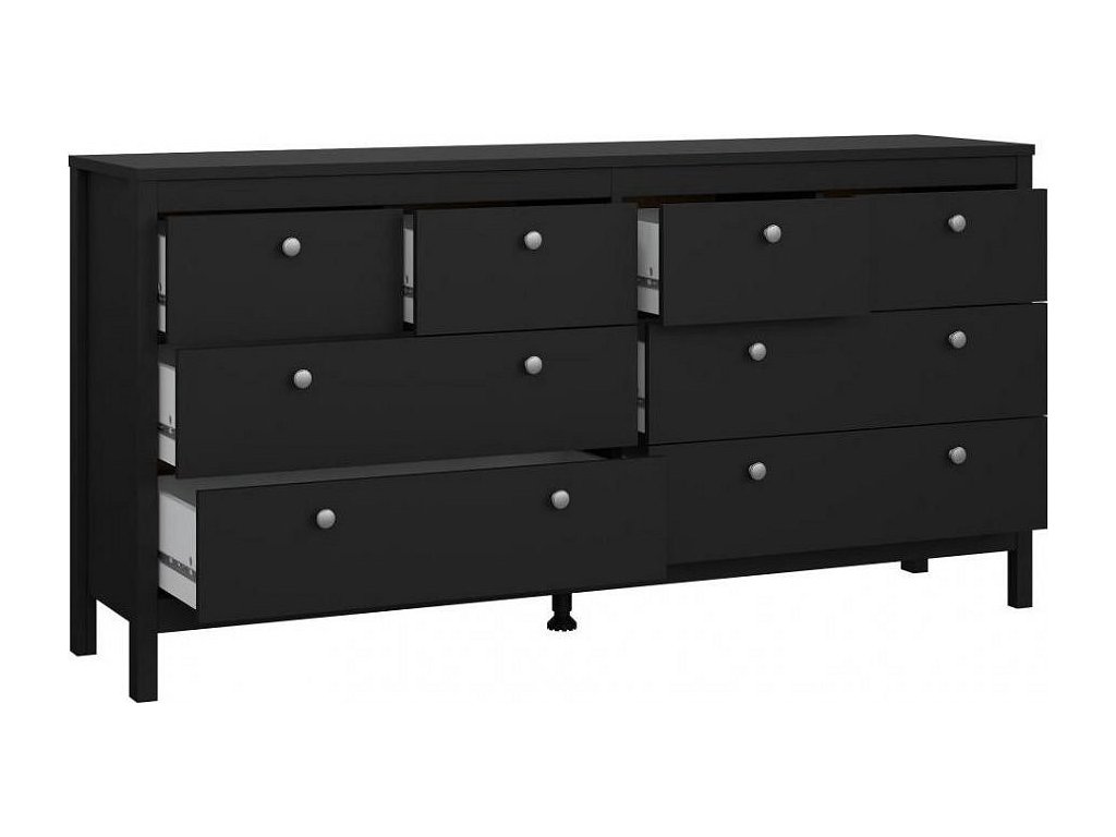 Komoda REAL 8S skvěle zapadne do moderního i stylového interiéru. Nábytek je vyroben z kvalitního lamina v černém provedení, které je odolné a snadné na údržbu. Stačí změnit drobný detail, kterým jsou v tomto případě úchytky a z jemného stylu provence, rázem budete mít moderní kus, který skvěle zapadne např. do industriálního stylu. Oba typy úchytek, které jsou vyobrazené na fotografii, jsou součástí balení. Díky svému uspořádání poskytuje dostatek úložného prostoru. Komodu je možné doplnit o další komponenty z řady REAL ve stejném designu. Dodáváno v demontu.