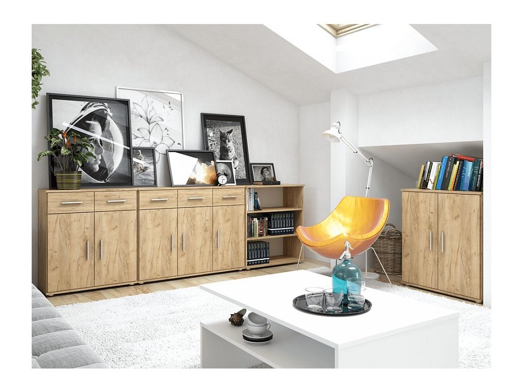 Kvalitní třídveřová komoda se 3 zásuvkami RESITA TYP 3 v dekoru dub artisan. Má dostatek úložného prostoru a je vhodná do každého interiéru. Jasně viditelná struktura dřeva. Komodu je možné doplnit o další komponenty z řady RESITA ve stejném designu. Dodáváme v demontovaném stavu.