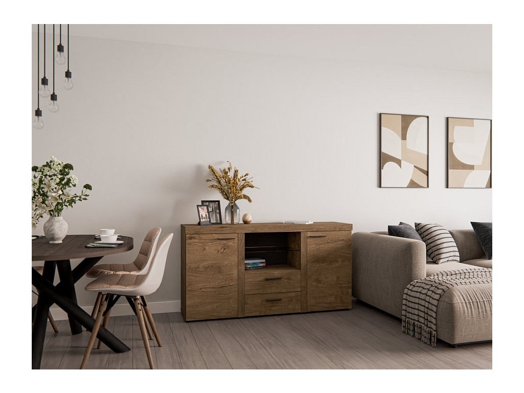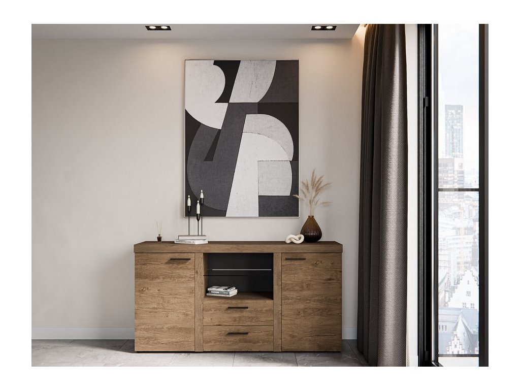 Komoda 2D2S je nejen skvělým doplňkem k bytové stěně RIZO, ale výborně poslouží jako samostatný kus nábytku. Má univerzální využití a nabízí dostatek úložného prostoru. Nábytek je vyroben z odolného lamina v dekoru dub lefkas. Komodu je možné doplnit o další komponenty z řady RIZO ve stejném designu. Vlivem nastavení monitorů, nebo displejů telefonů, se zobrazení barev na fotografii může od skutečnosti lišit.