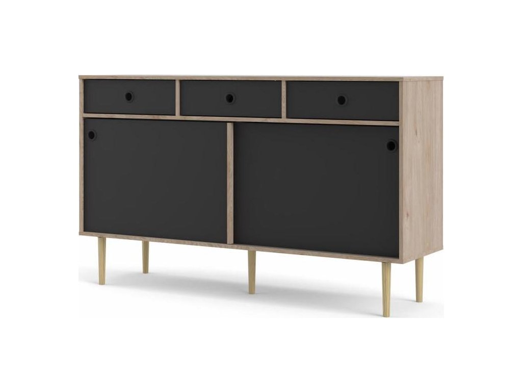 Retro komoda RUBY 2D3S v dekoru hiskory v kombinaci s černou. Nábytek je vyroben z kvalitního lamina, které je odolné a snadné na údržbu. Retro vzhled zdůrazňují vysoké nožky, kulaté výřezy místo úchytek a posuvná dvířka. Díky svému uspořádání poskytuje dostatek úložného prostoru. Komodu je možné doplnit o další komponenty z řady RUBY ve stejném dekoru. Nabízíme ve dvou barevných provedeních. Dodáváme v demontovaném stavu. Vlivem nastavení monitorů, nebo displejů telefonů, se zobrazení barev na fotografii může od skutečnosti lišit.