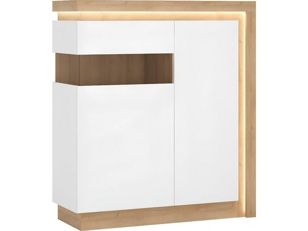Komoda s vitrínou LEONARDO LYOV04L, dub riviera/bílá lesk