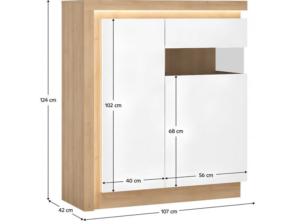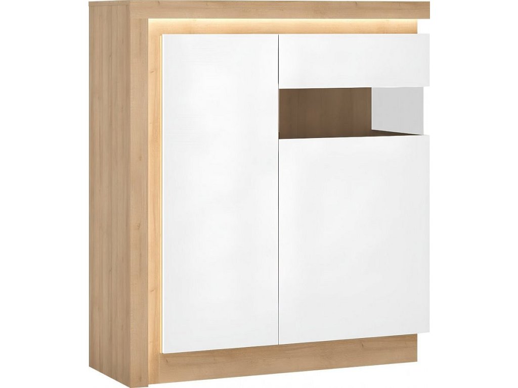 Komoda s vitrínou LEONARDO LYOV04P, dub riviera/bílá lesk