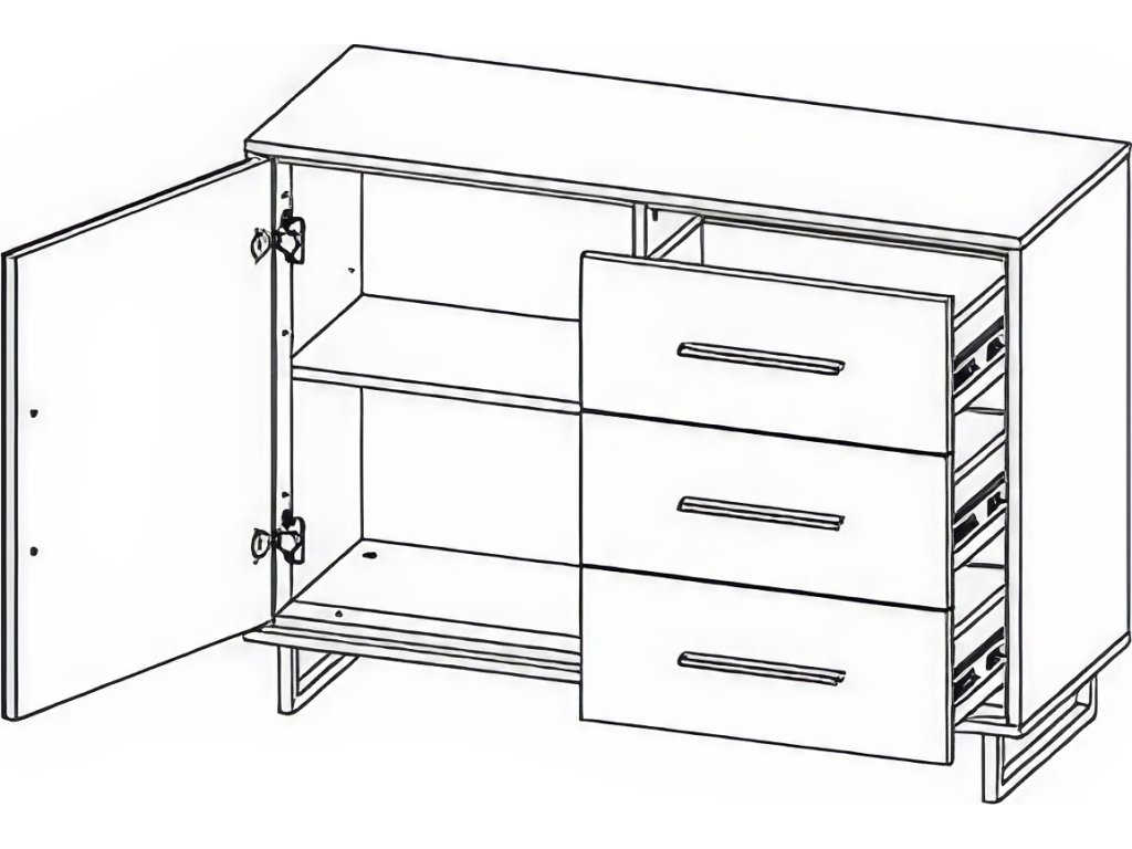 CASA 97060 Komoda jednodveřová se třemi zásuvkami v industriálním stylu je vyrobena z LTD desky, korpus je v barvě šedé, přední část dvířek je doplněna lištami z přírodního dubového dřeva. Nohy jsou kovové černé. Nábytek disponuje teleskopickými pojezdy a systémem samodovíracích závěsů. Nabídka komponentů této sektorové řady umožňuje sestavit si nábytek dle vlastních představ. Dodáváme v demontovaném stavu.