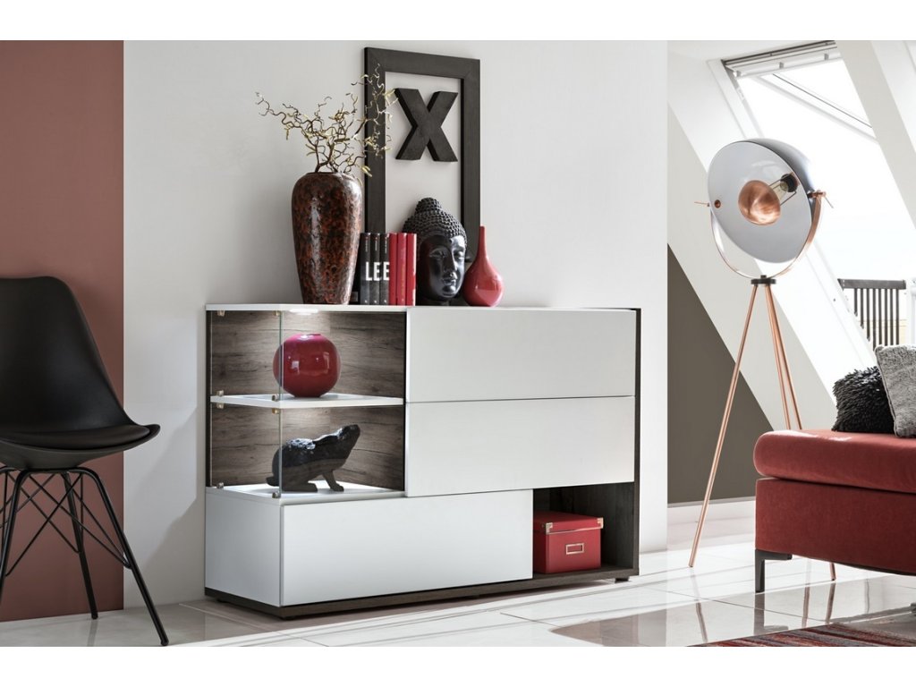 Komoda SILK s LED osvětlením, bílá/perla elm
