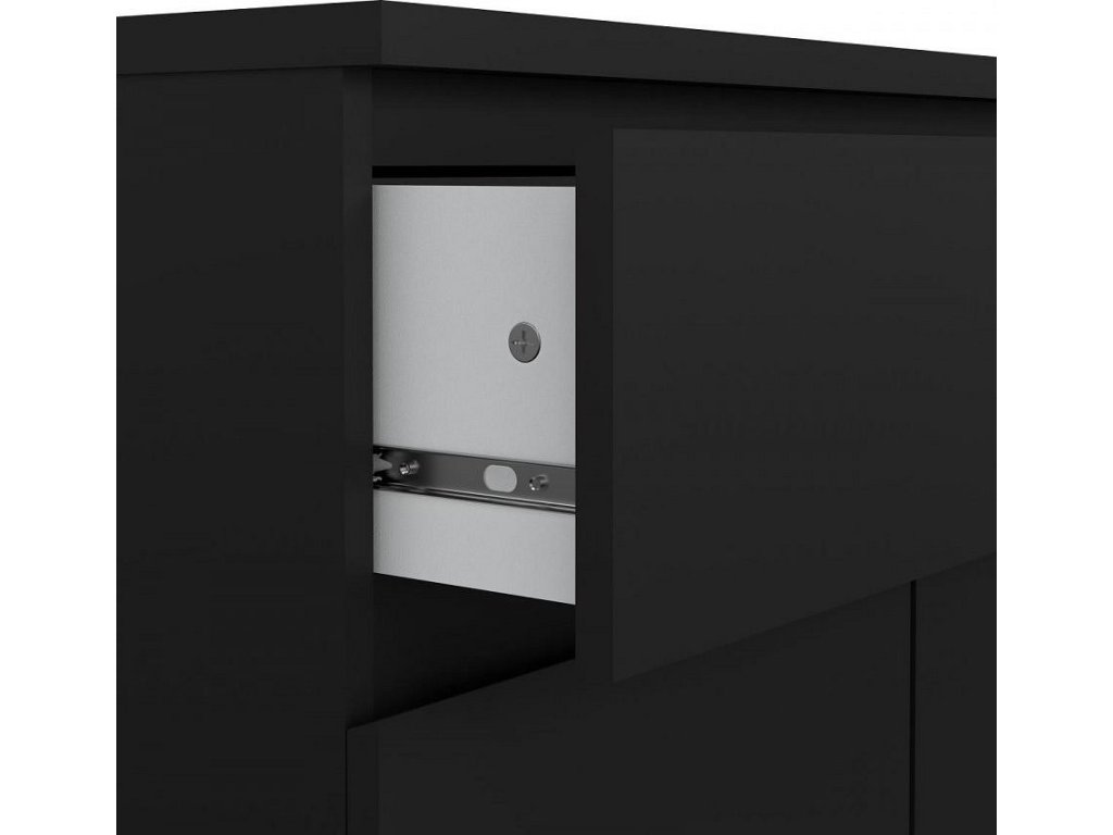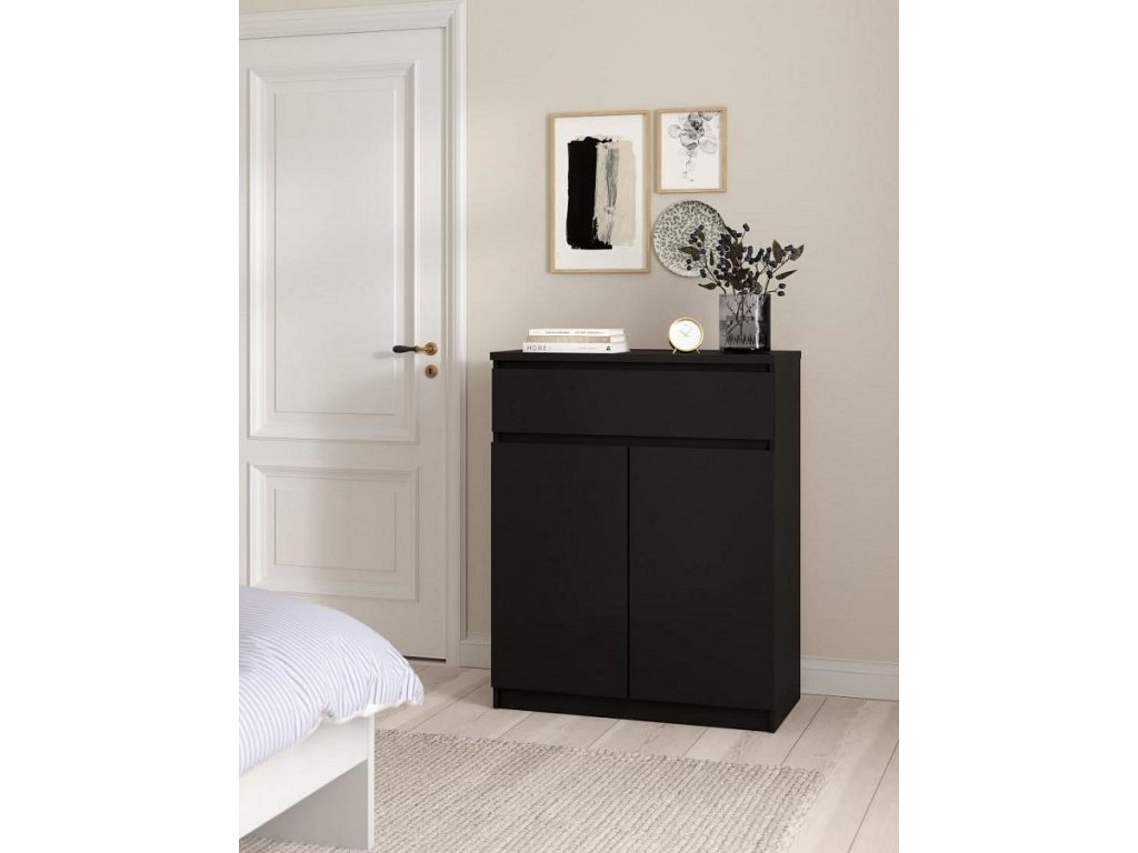 Komoda SIMPLICITY v provedení černý mat, v nadčasovém skandinávském designu. Má rovné a čisté linie, které vytvoří útulný, pohodový a příjemný interiér. Komoda díky svému provedení nabízí univerzální použití, má dostatek úložného prostoru a najde uplatnění v kterékoliv místnosti Vašeho bytu. Komodu je možné doplnit o další komponenty z řady SIMPLICITY ve stejném designu. Je dodávaná v demontu. Součástí je montážní návod včetně všech spojovacích prvků. Vyobrazené dekorace nejsou v ceně.