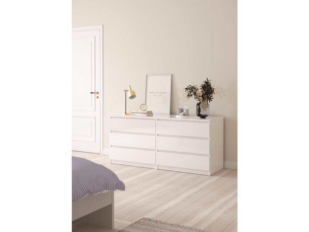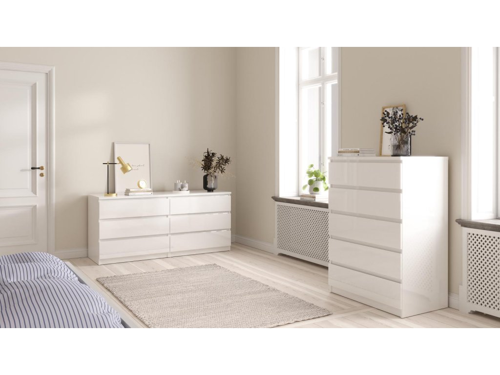 Komoda SIMPLICITY v provedení bílém lesku, v nadčasovém skandinávském designu. Má rovné a čisté linie, které vytvoří útulný, pohodový a příjemný interiér. Komoda díky svému provedení nabízí univerzální použití, má dostatek úložného prostoru a najde uplatnění v kterékoliv místnosti Vašeho bytu. Komodu je možné doplnit o další komponenty z řady SIMPLICITY ve stejném designu. Je dodávaná v demontu. Součástí je montážní návod včetně všech spojovacích prvků. Vyobrazené dekorace nejsou v ceně.