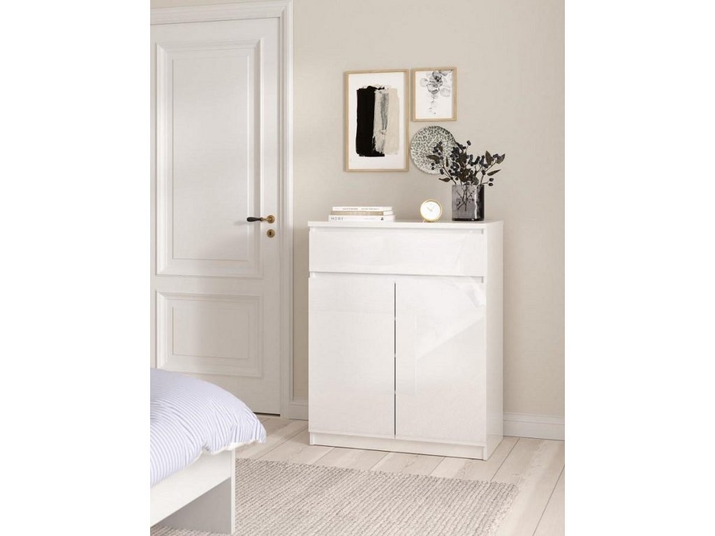 Komoda SIMPLICITY v provedení bílém lesku, v nadčasovém skandinávském designu. Má rovné a čisté linie, které vytvoří útulný, pohodový a příjemný interiér. Komoda díky svému provedení nabízí univerzální použití, má dostatek úložného prostoru a najde uplatnění v kterékoliv místnosti Vašeho bytu. Komodu je možné doplnit o další komponenty z řady SIMPLICITY ve stejném designu. Je dodávaná v demontu. Součástí je montážní návod včetně všech spojovacích prvků. Vyobrazené dekorace nejsou v ceně.