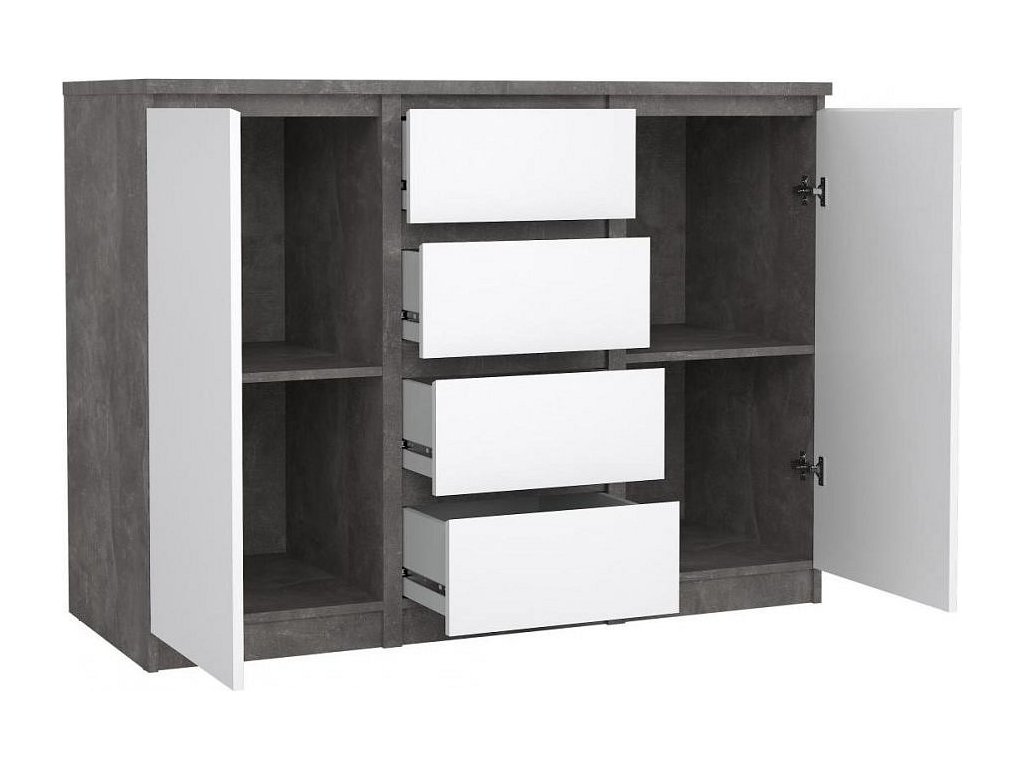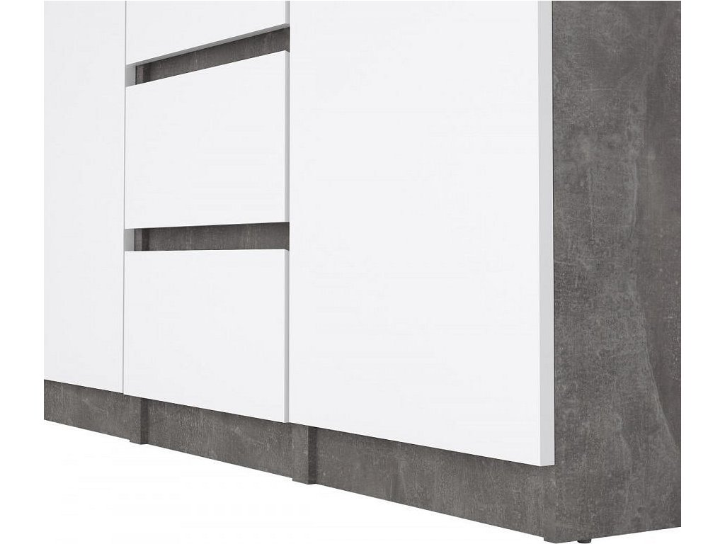 Komoda SIMPLICITY v dekoru beton v kombinaci s bílým leskem, v nadčasovém skandinávském designu. Má rovné a čisté linie, které vytvoří útulný, pohodový a příjemný interiér. Komoda díky svému provedení nabízí univerzální použití, má dostatek úložného prostoru a najde uplatnění v kterékoliv místnosti Vašeho bytu. Komodu je možné doplnit o další komponenty z řady SIMPLICITY ve stejném designu. Je dodávaná v demontu. Součástí je montážní návod včetně všech spojovacích prvků. Vyobrazené dekorace nejsou v ceně.