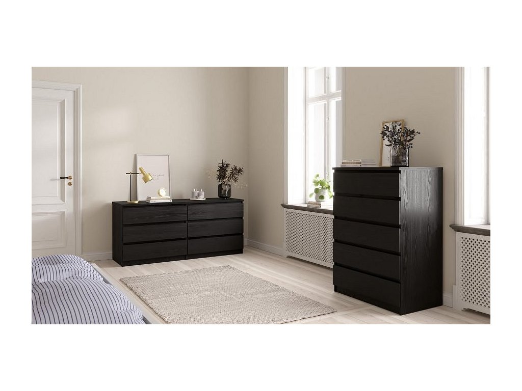 Komoda SIMPLICITY v dekoru woodgrain černá, v nadčasovém skandinávském designu. Má rovné a čisté linie, které vytvoří útulný, pohodový a příjemný interiér. Komoda díky svému provedení nabízí univerzální použití, má dostatek úložného prostoru a najde uplatnění v kterékoliv místnosti Vašeho bytu. Komodu je možné doplnit o další komponenty z řady SIMPLICITY ve stejném designu. Je dodávaná v demontu. Součástí je montážní návod včetně všech spojovacích prvků. Vyobrazené dekorace nejsou v ceně.