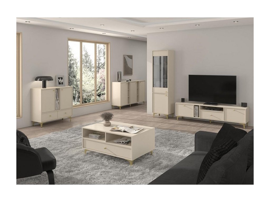 Série Tomila nabízí noční, TV i konferenční stolky, vitríny a komody v široké škále tvarů, barev a typů noh.