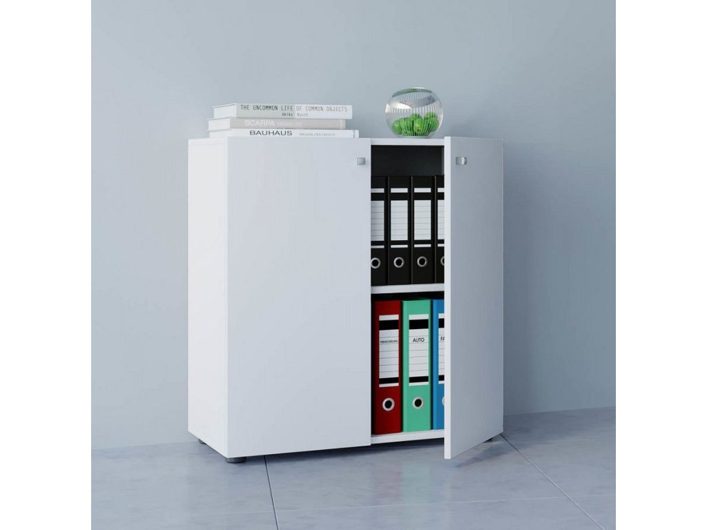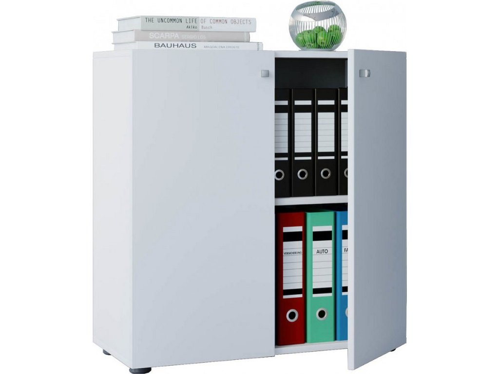Tuto univerzální skříňku s dvířky využijete nejen v kanceláři, ale klidně také v předsíni, obývacím nebo dětském pokoji. Uložíte do ní nejen kancelářské potřeby (např. 14 šanonů), ale i knihy, oblečení či boty. K dispozici budete mít jednu variabilní polici.