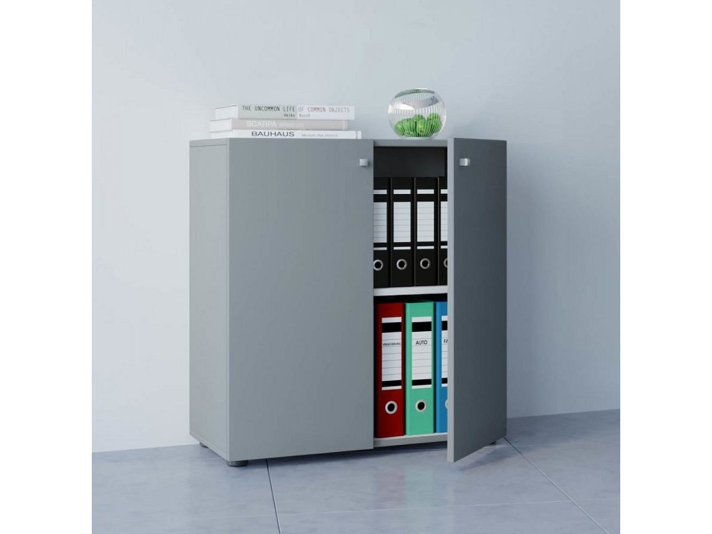 Tuto univerzální skříňku s dvířky využijete nejen v kanceláři, ale klidně také v předsíni, obývacím nebo dětském pokoji. Uložíte do ní nejen kancelářské potřeby (např. 14 šanonů), ale i knihy, oblečení či boty. K dispozici budete mít jednu variabilní polici.