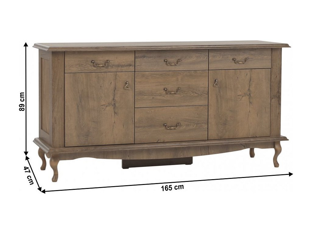 Komoda DA7 z elegantní kolekce VILAR Vám dopřeje luxus a nádech historie. Jedinečný design je sklouben s vysokou funkčností. Celá kolekce je vyrobena z kvalitního lamina v dekoru dub lefkas. Komoda DA7 disponuje 5 zásuvkami a nabízí dostatek úložného prostoru. Ke komodě doporučujeme přikoupit další komponenty ze sestavy VILAR ve stejném designu. Tloušťka použitého matriálu DTD 30 mm. Úchytky kovové. Dodáváme v demontu.