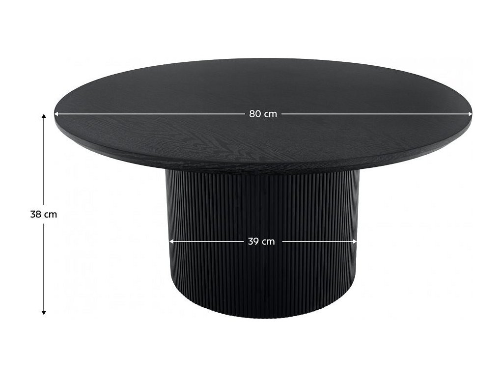Materiál: dýhovaná MDF Barva: černá Rozměry (PxV): 80x38 cm Tloušťka platu stolu: 2,5 cm Nosnost: 25 kg Originální kousek Kulatý Moderní a stylový Dodáváno v demontu