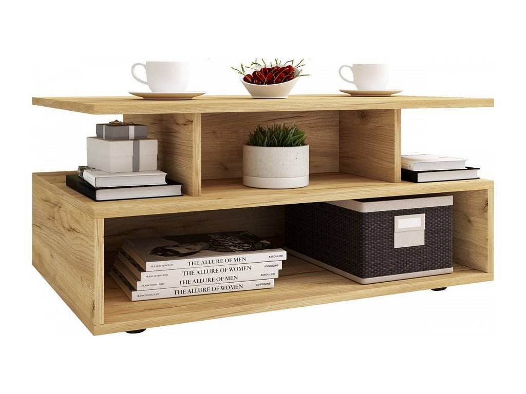 Stylový konferenční stůl VCM Esila je elegantní a praktický stolek do obýváku, který se skvěle hodí do moderního i klasického interiéru. Povrch v imitaci dřeva působí přirozeně a teple, zatímco pět otevřených přihrádek nabízí dostatek místa pro knihy, dekorace či jiné drobnosti.