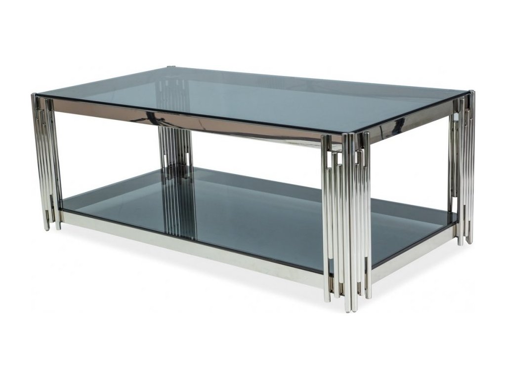 CASA 11309 Konferenční stolek v moderním stylu glamour. Konstrukce je z kovu v barvě chróm, odkládací desky jsou z tvrzeného kouřového skla. Tento stylový kousek v netradičním designu se bude vyjímat v každém interiéru. Dodáváme v demontovaném stavu.