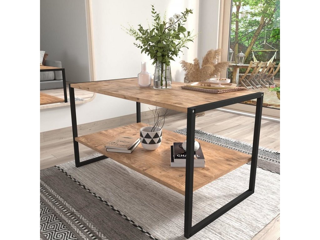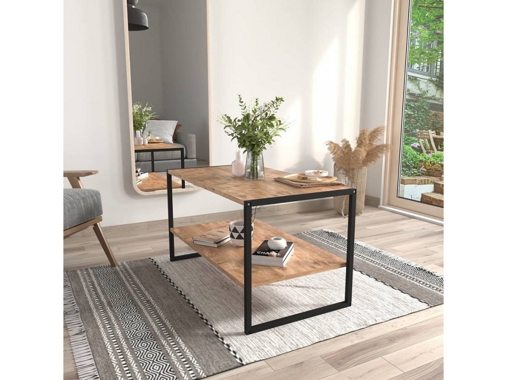 Konferenční stůl Insasi L je moderní stolek do obýváku, který na první pohled zaujme svým industriálním designem. Díky otevřenému odkládacímu prostoru poskytuje praktické místo pro knihy, dálkové ovladače či dekorace, takže udržuje obývací pokoj přehledný a upravený. Tento konferenční stůl se snadno kombinuje s dalším nábytkem do obýváku a stane se výrazným dekorativním i funkčním prvkem interiéru.