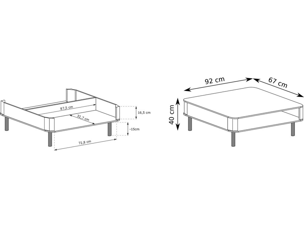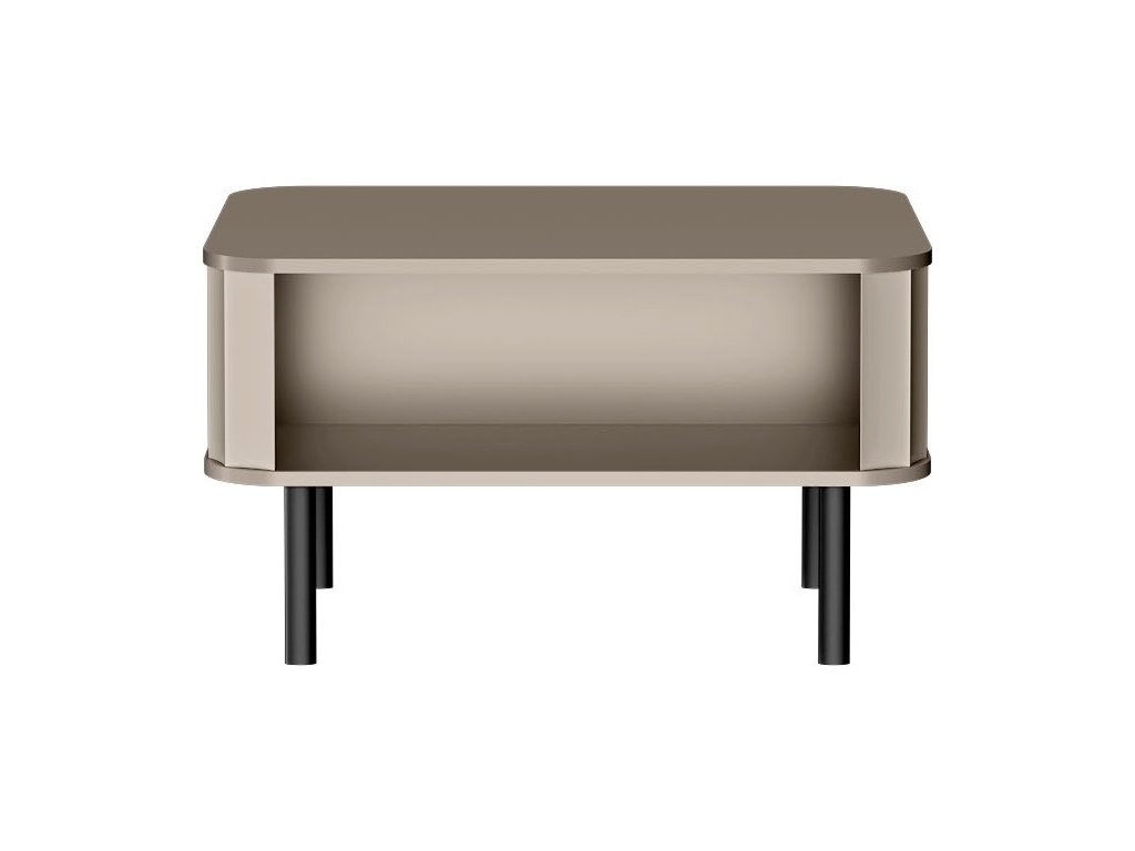 Stolek podepírají štíhlé kovové ocelové nožky práškově lakované o výšce 20 cm, které zajišťují nejen stabilitu, ale i lehkost vzhledu a snadnější úklid pod nábytkem. Jsou to kusy nábytku, které se nestylizují násilně, ale spíše podtrhují charakter prostoru.