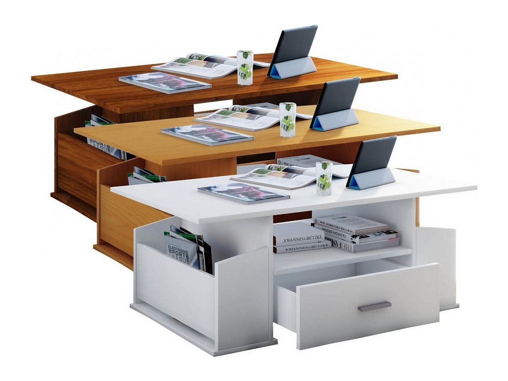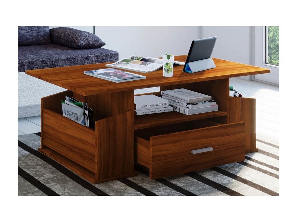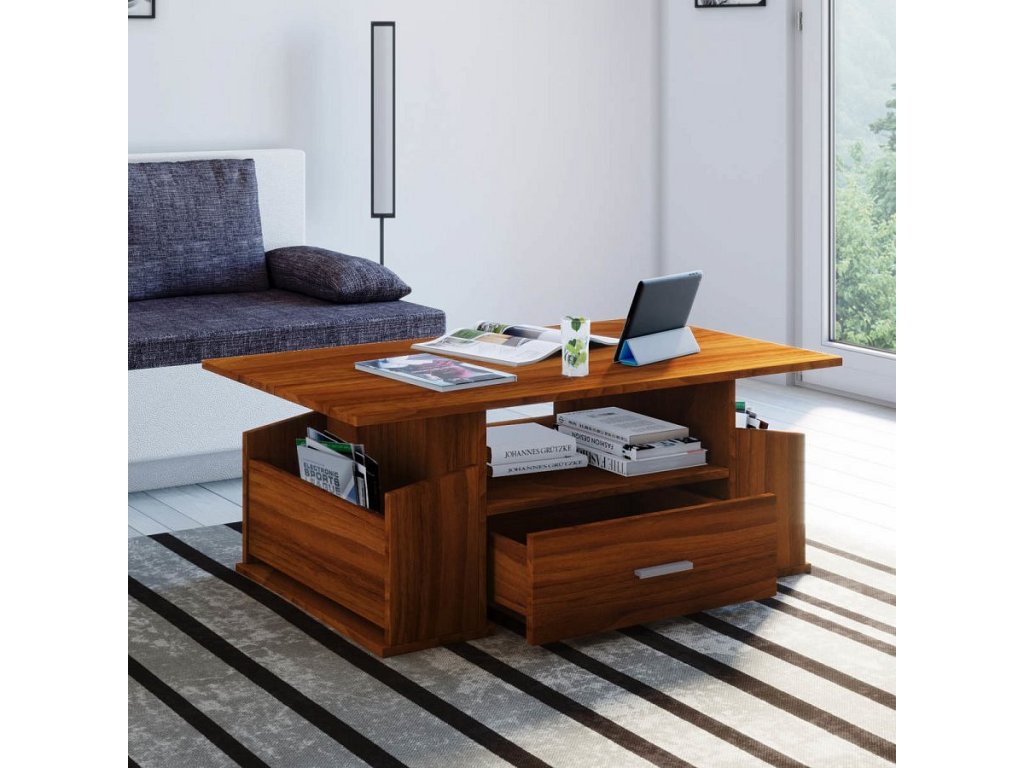 Tento originální konferenční stolek Junata může být univerzálním kusem nábytku pro téměř každý obývací pokoj. Dvě boční přihrádky a jedna velká zásuvka poskytne dostatek úložného prostoru.