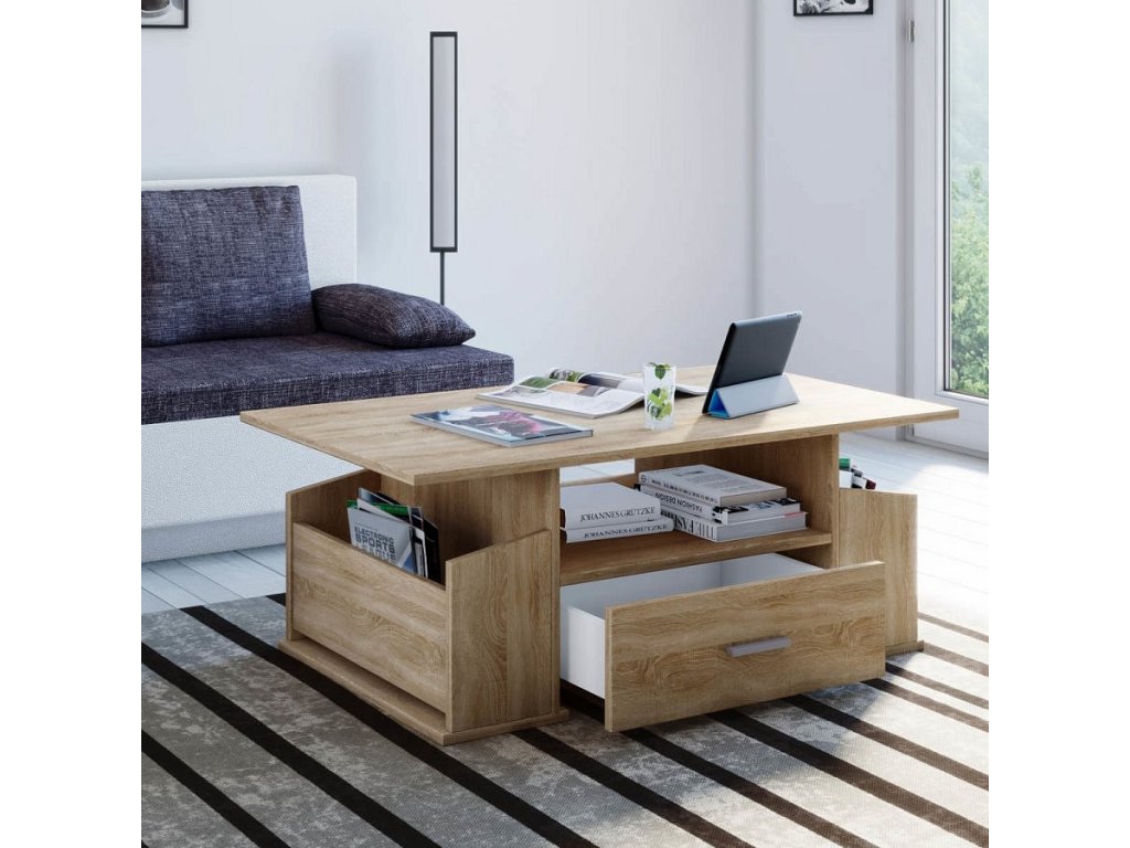 Tento originální konferenční stolek Junata může být univerzálním kusem nábytku pro téměř každý obývací pokoj. Dvě boční přihrádky a jedna velká zásuvka poskytne dostatek úložného prostoru.