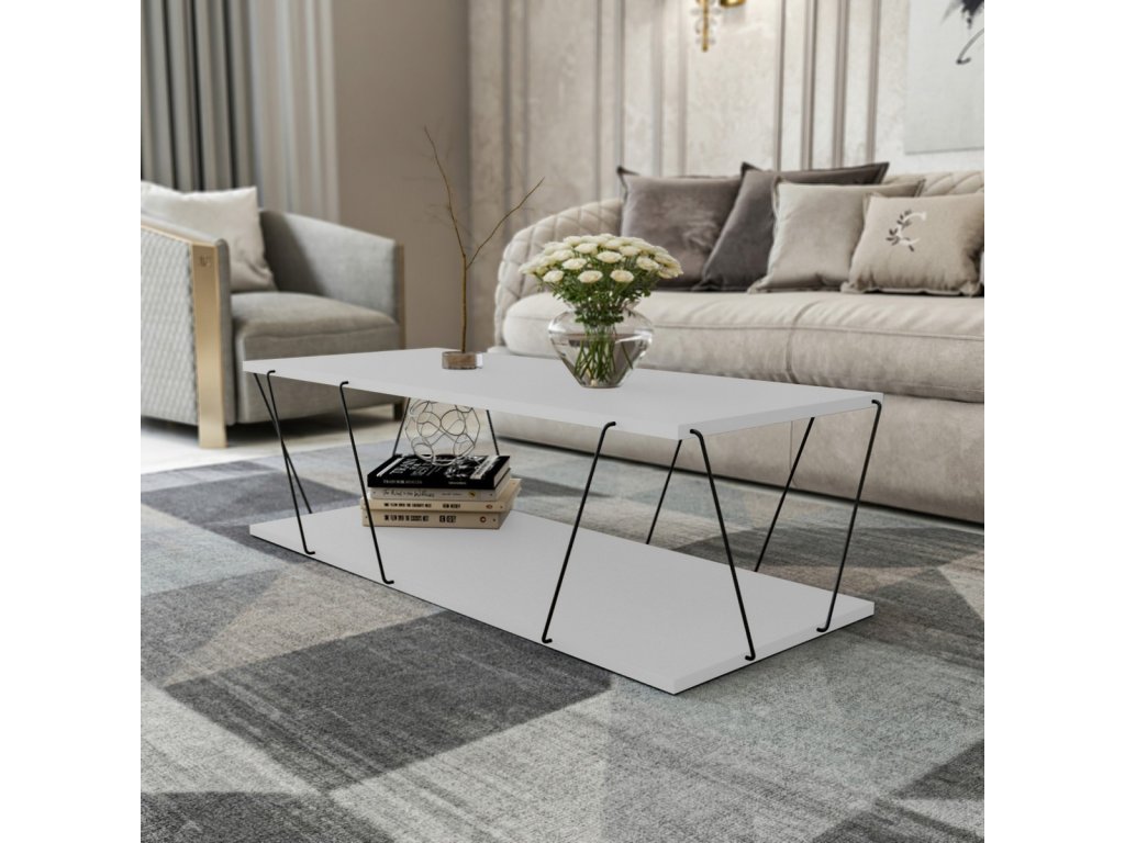 Elegantní konferenční stolek navržený v industriálním stylu, ideální pro každý moderní obývací pokoj. Kombinace černé kovové konstrukce a dekoru matné bílé dodává stolku sofistikovaný vzhled, který zaujme na první pohled. Materiál je Melamin, VT laminát (18 mm) a kov. Kvalitní laminátová deska zajišťují odolnost a dlouhou životnost. Dodáváme v demontovaném stavu.